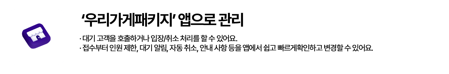 웨이팅 솔루션 | 월 42,900원 (3년 약정) | 월 44,000원 | 월 48,400원 | 월 51,700원 | 월 55,000원 | 첫 8개월 무상 지원 & 탁상용 거치대 선착순 500명 증정 |